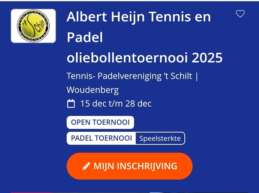 Tennis- Padelvereniging 't Schilt organiseert weer hun jaarlijkse oliebollentoernooi van 15 t/m 28 december.